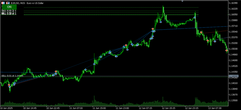 - Алгоритм легко переносит тренд/флэт/боковой канал и резкие всплески цены, так как он не основа на методах, имеющих эффект запаздывания. На Рисунке 4 наглядно показано, что во время тренда система способна полностью забрать все движение, разделив его на мелкие сегменты, подобно тому, как муравьи разгрызают крупные фрагменты пищи и переносят в муравейник по частям.