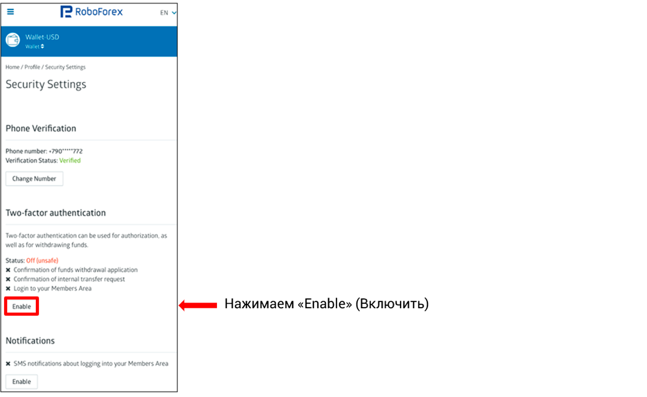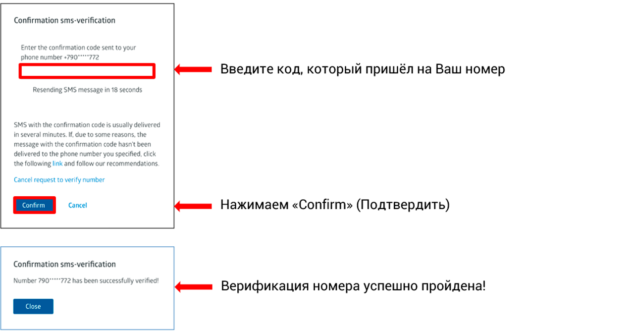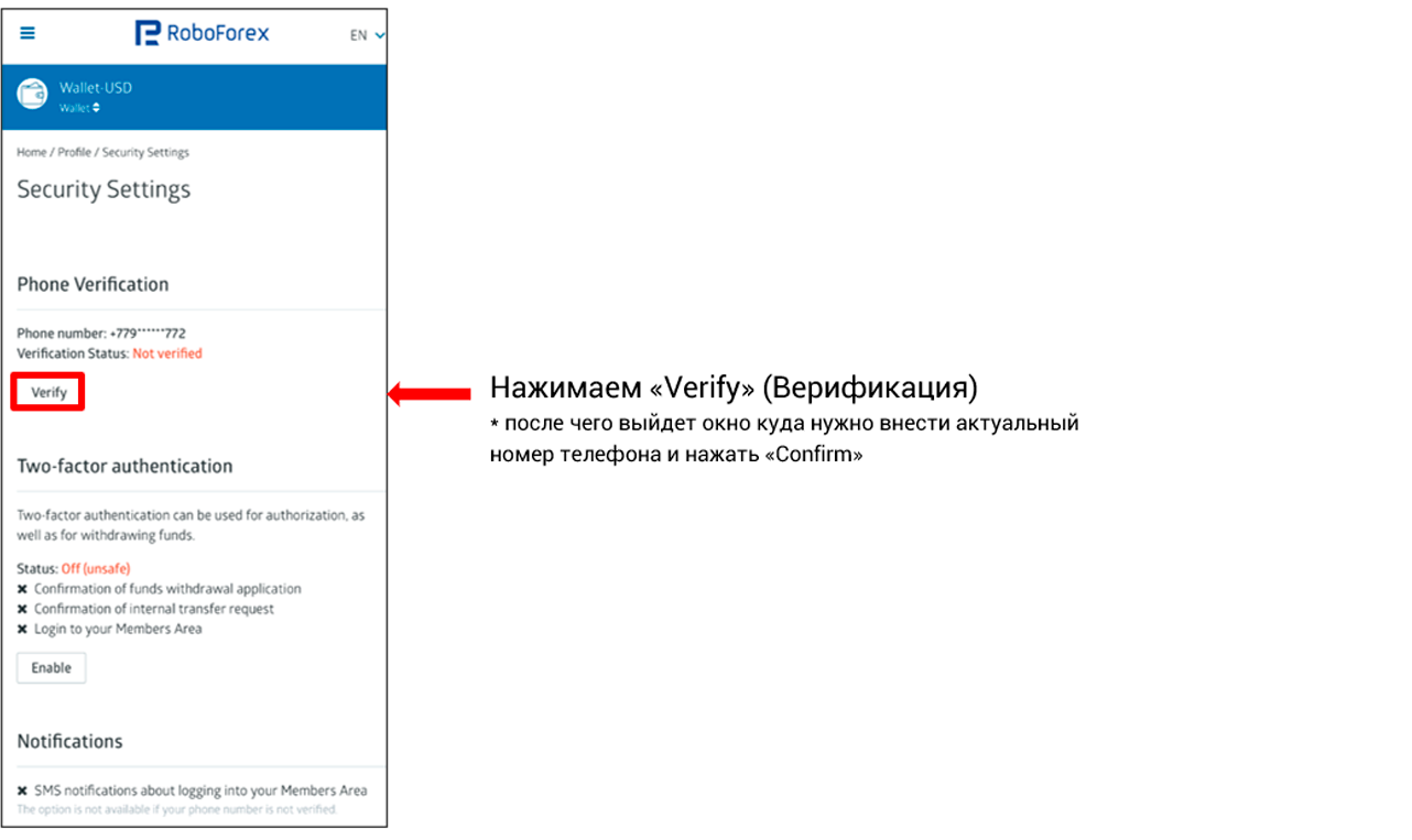 Переходим к верификации телефона: