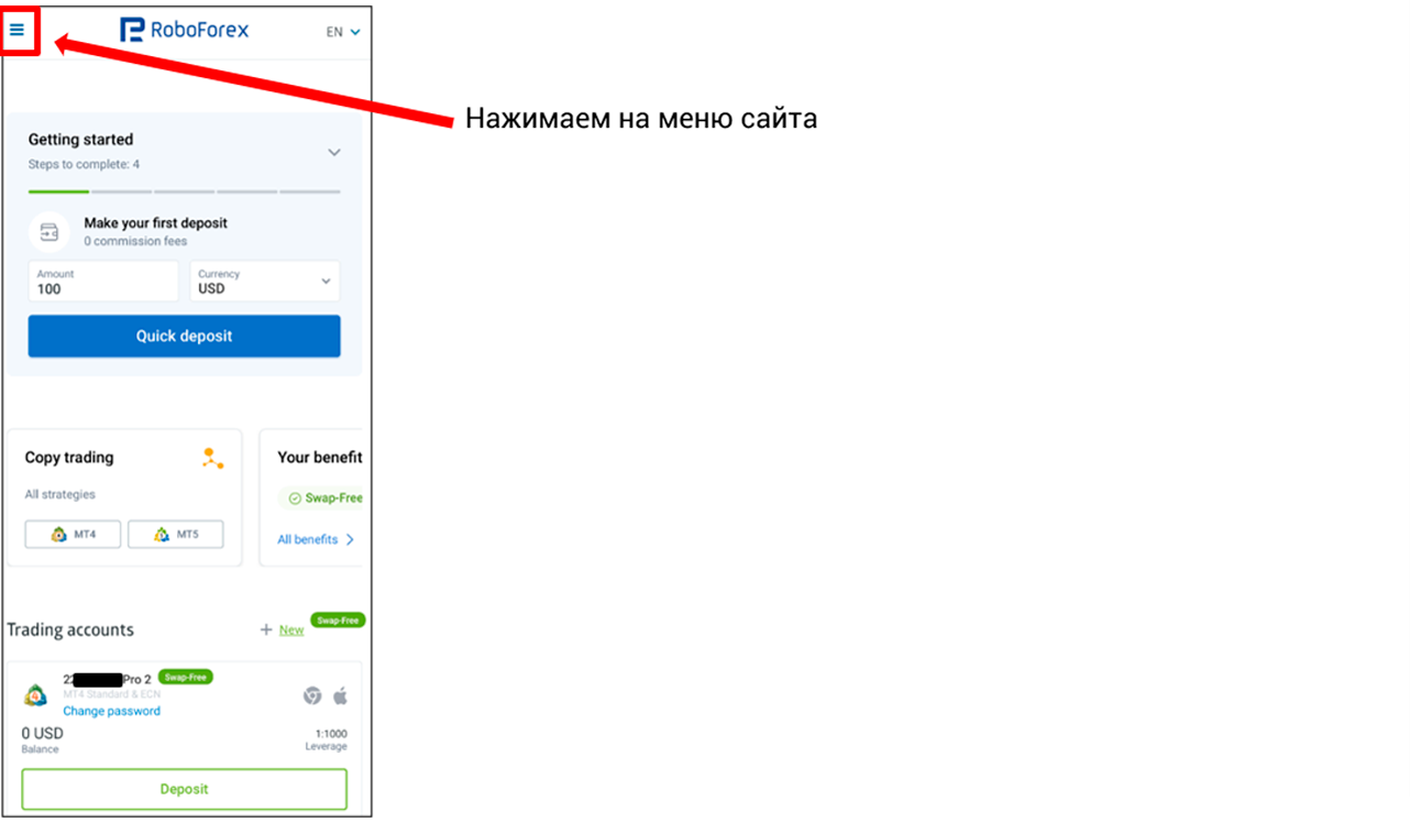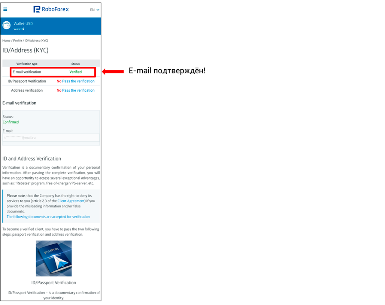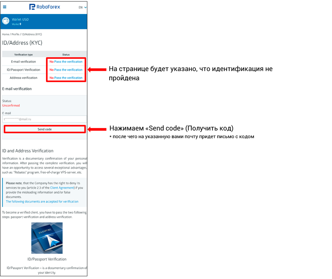 Требуется отправить со своей почты на адрес verification@roboforex.com следующее письмо: